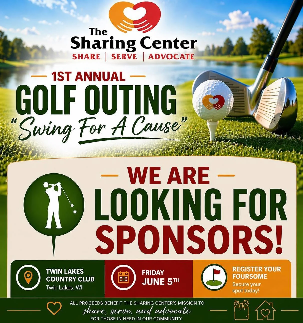 The Sharing Center’s 1st Annual Golf Outing – “Swing for a Cause” is bringing our community together, and we’re inviting local businesses to step in and make an impact.
